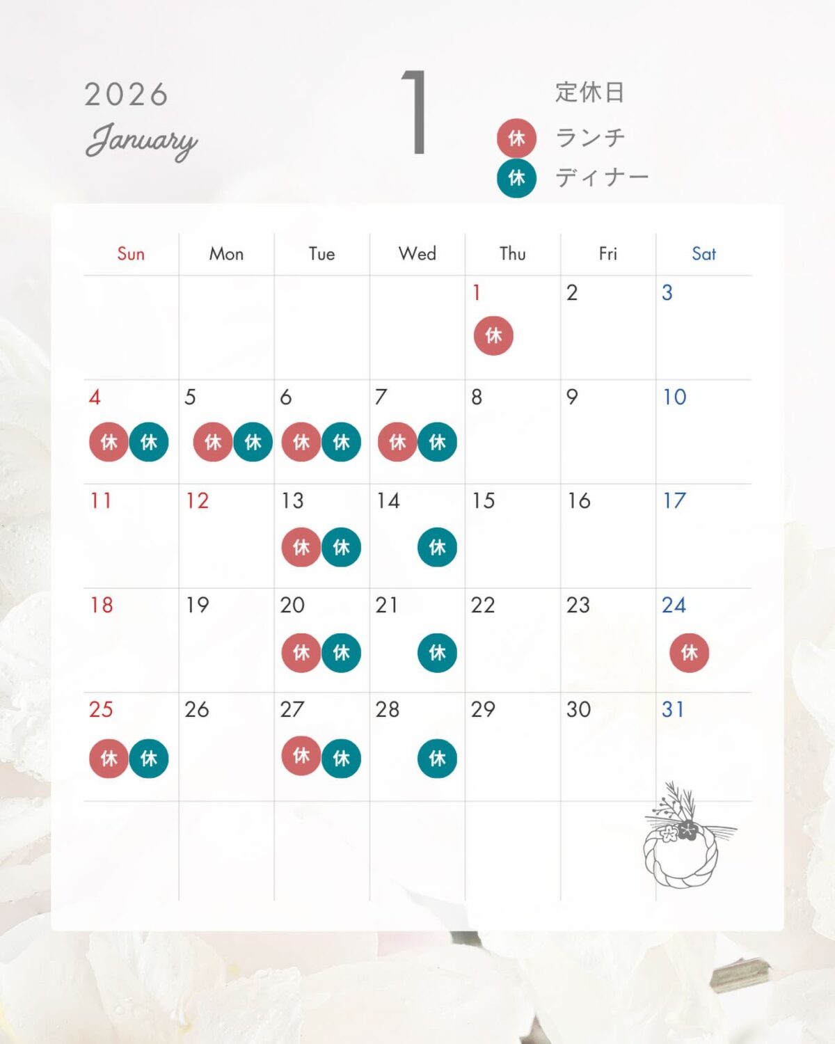 1/4(日)〜1/7(水)はラウーのお正月休みをいただきます🎍