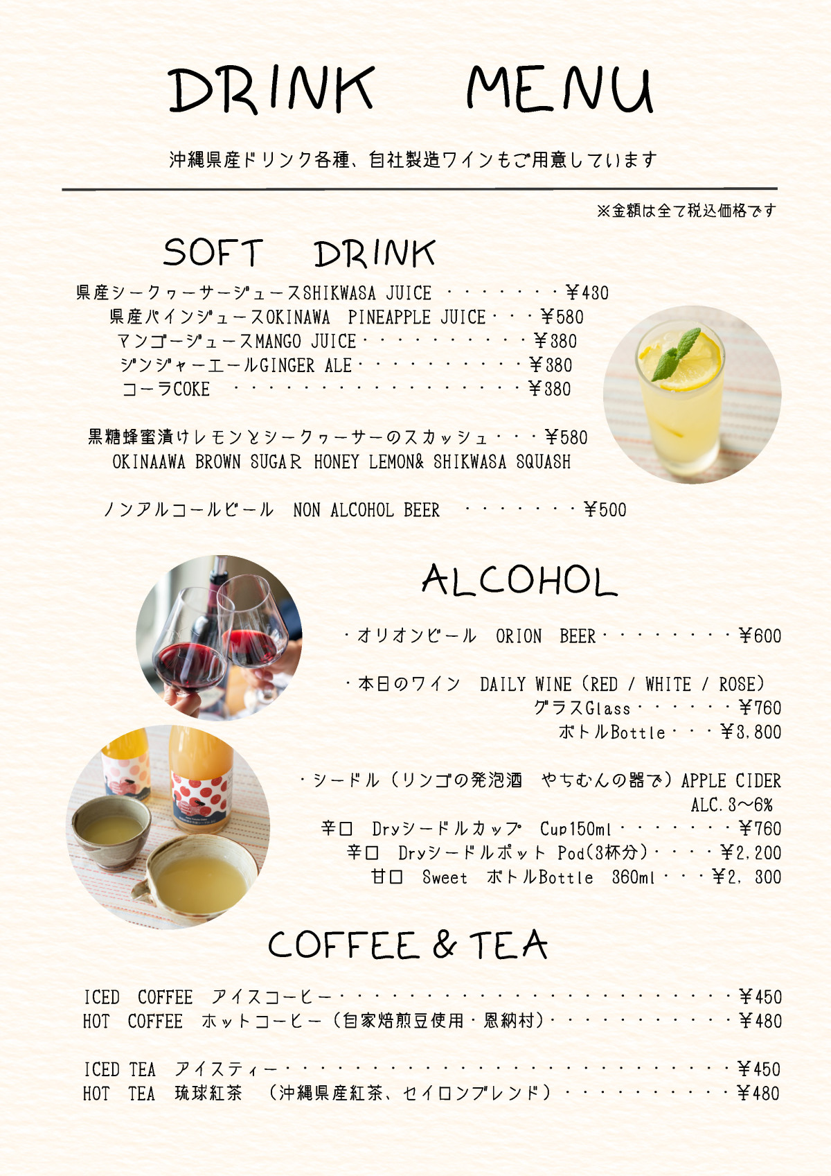 シェフ厳選の沖縄食材を使い、真心こめたお料理をご用意してお待ちしています。